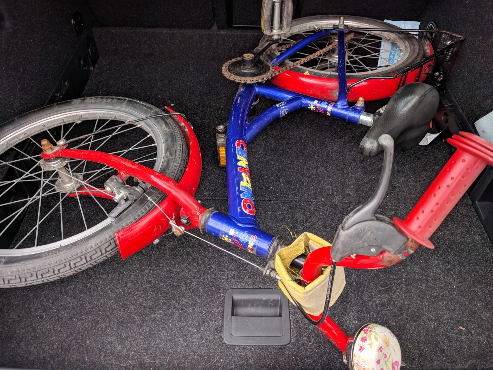 Eigentlich wollten wir als Überraschung mit den Kindern zum Bilderbuchfestival. Aber ich kann einfach nicht, denn das würde laufen und stehen und bücken bedeuten. Ich bin dazu nicht in der Lage. Was wir aber können: Ein Fahrrad fürs Runzelfüßchen besorgen. Sie selbst hatte noch nicht wirklich den Wunsch danach, aber wir haben mal geschaut was es so gibt und das hier war ein Schnäppchen. Es ist ein bißchen rostig und braucht ein neues Schutzblech, aber es fährt und wenn man mal damit umfällt ist es auch kein Problem. Meine Tochter nutzt es für den kurzen Weg zum Auto wie ein Laufrad was eine gute Idee ist sich dem Ganzen zu nähern. Die nächsten Wochen wird mein Mann das sicher mit ihr alles üben.