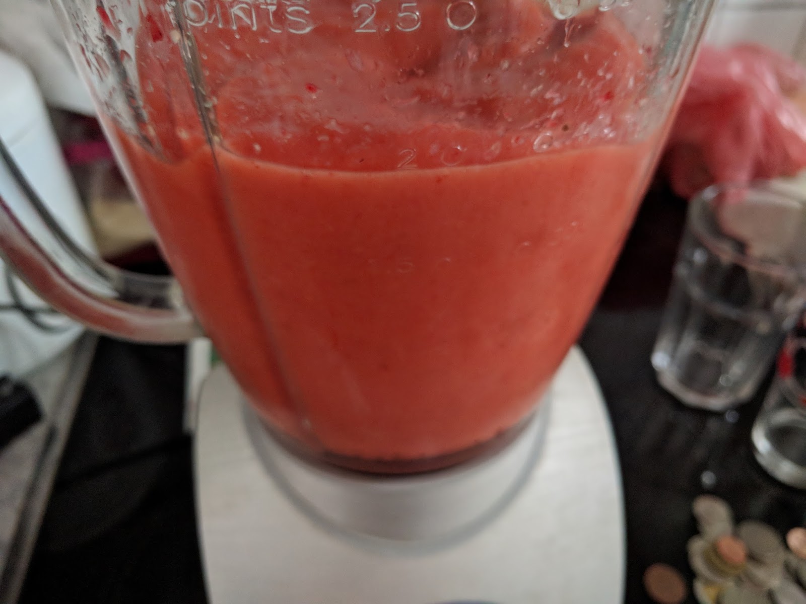 Die Kinder vermissen Thailand und fragen, wann wir wieder einen Smoothie trinken können. Da wir noch Obst haben mache ich mich sofort an die Arbeit. Erdbeer- Mango-Smoothie, quasi aus der Tiefkühltruhe. Schmeckt ziemlich gut, aber ich muss zugeben, die tropischen Temperaturen fehlen mir.