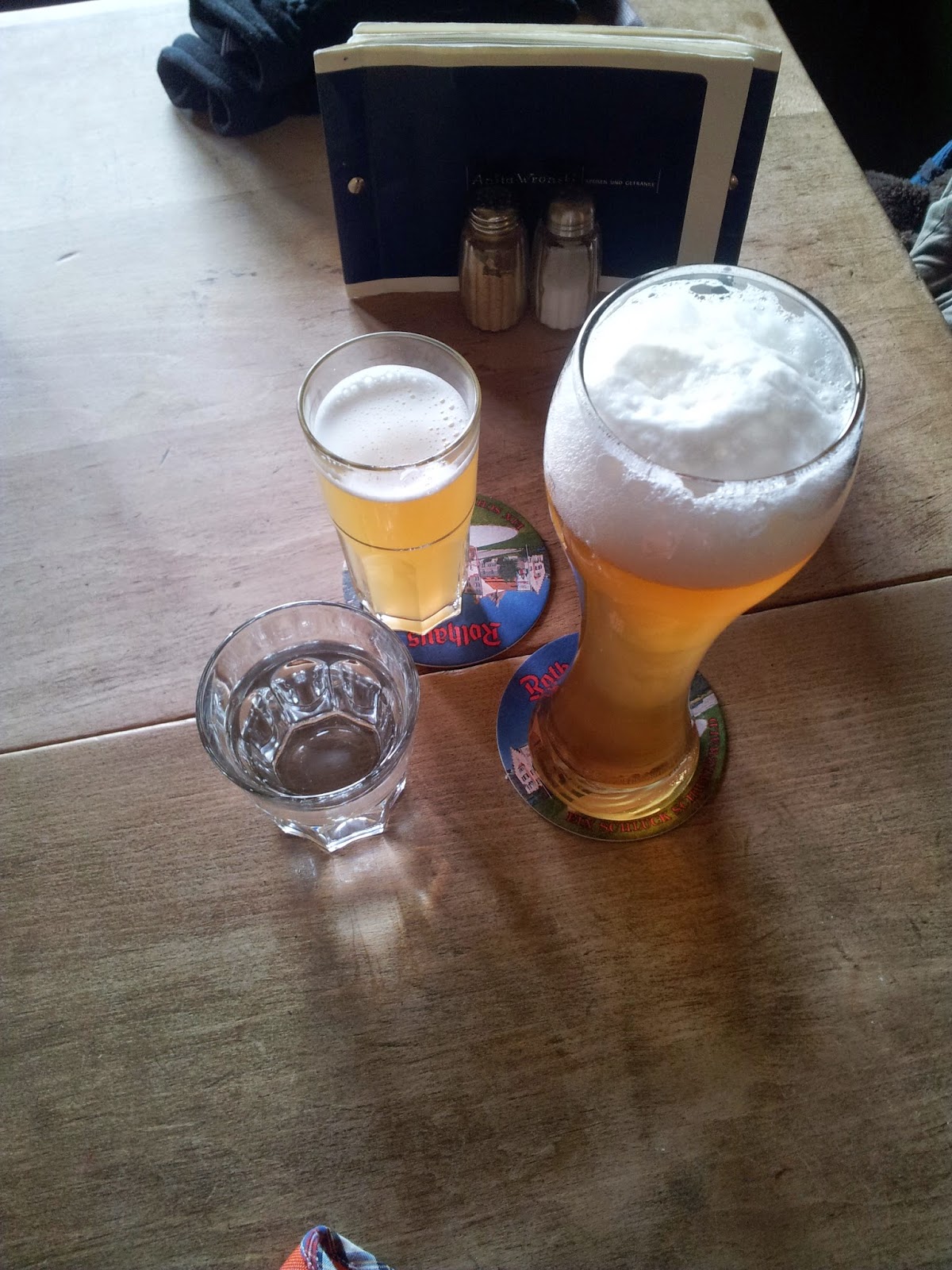 Nach dem kalten Marktbesuch sind wir Essen gegangen. Fürs Runzelfüßchen gab es Wasser, bzw. gut ein Viertel meines warmen Apfelsafts, für meinen Mann ein alkoholfreies Weizen. Das Essen war super lecker, aber auch hier habe ich das Fotografieren vergessen. Herje.